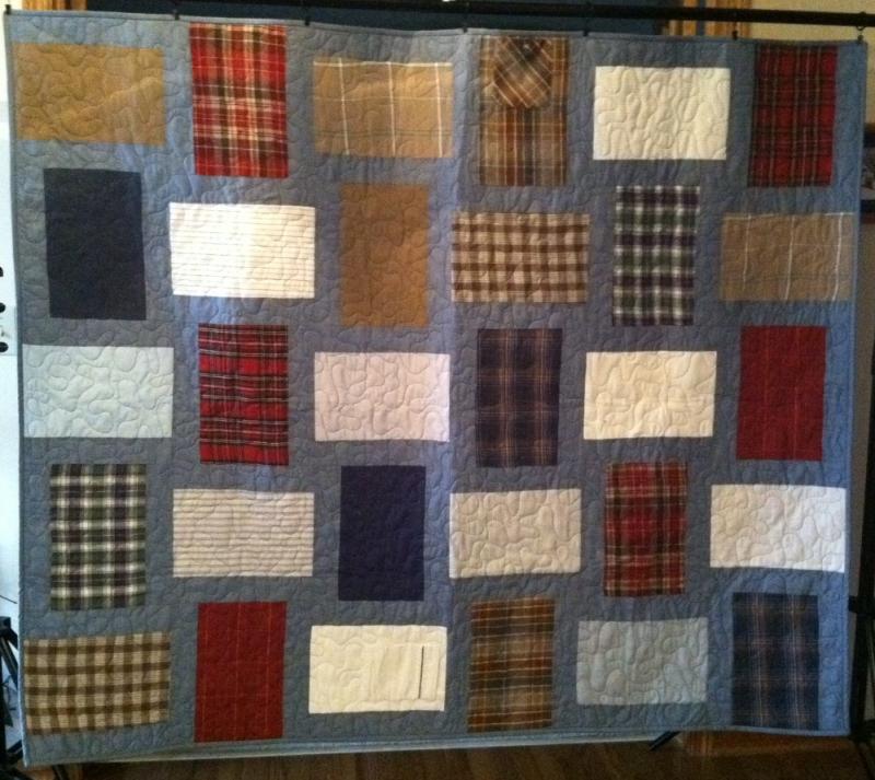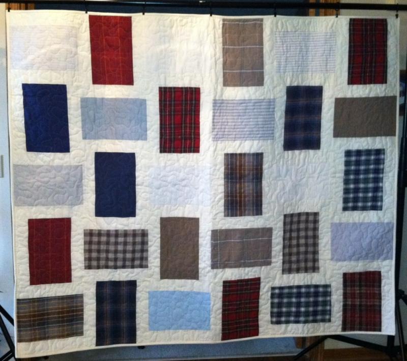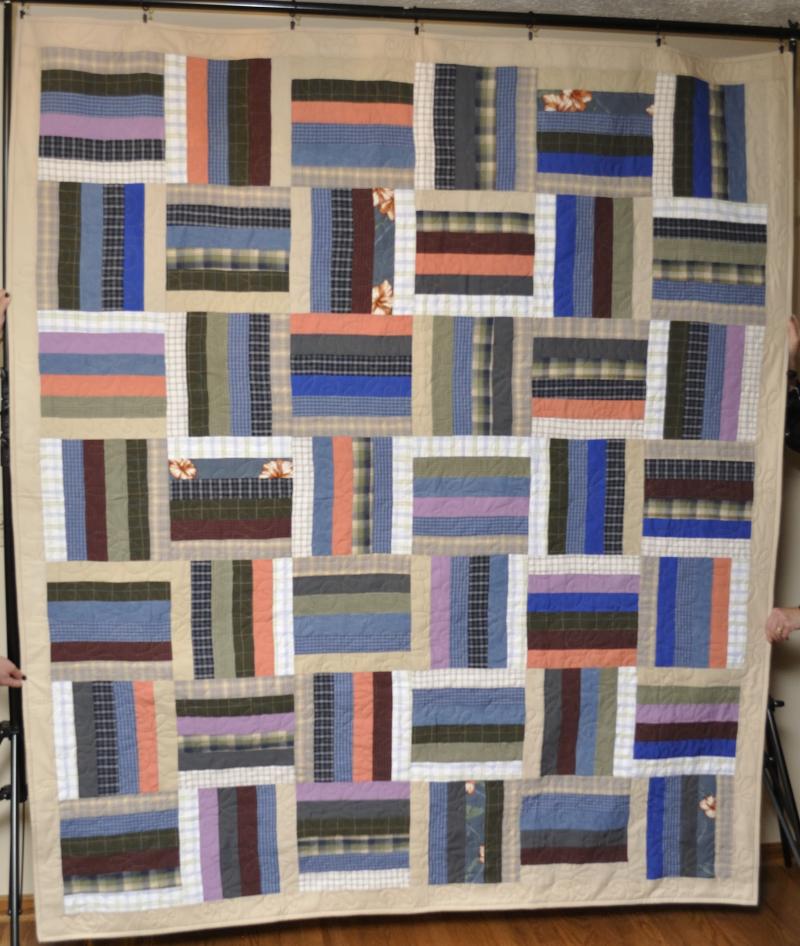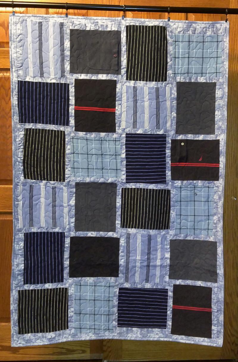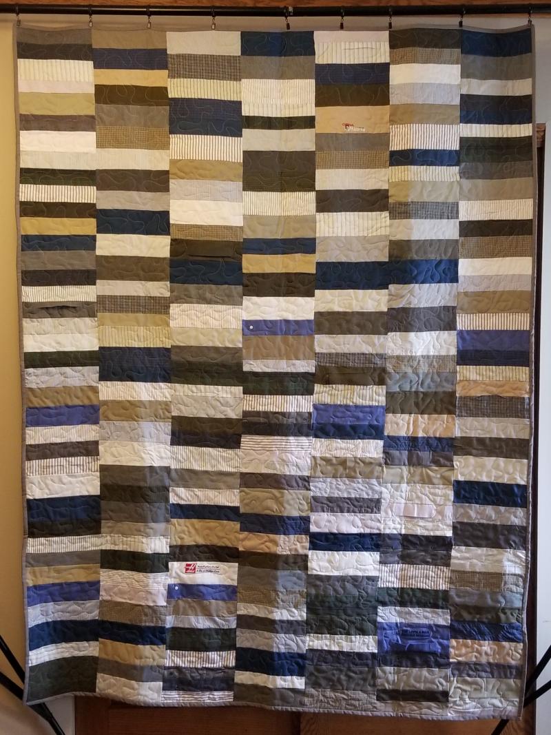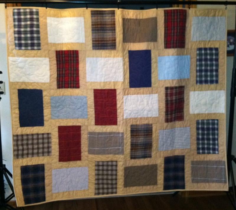 These 3 quilts were made for a mother and two daughters from their beloved husband/father's favorite shirts: