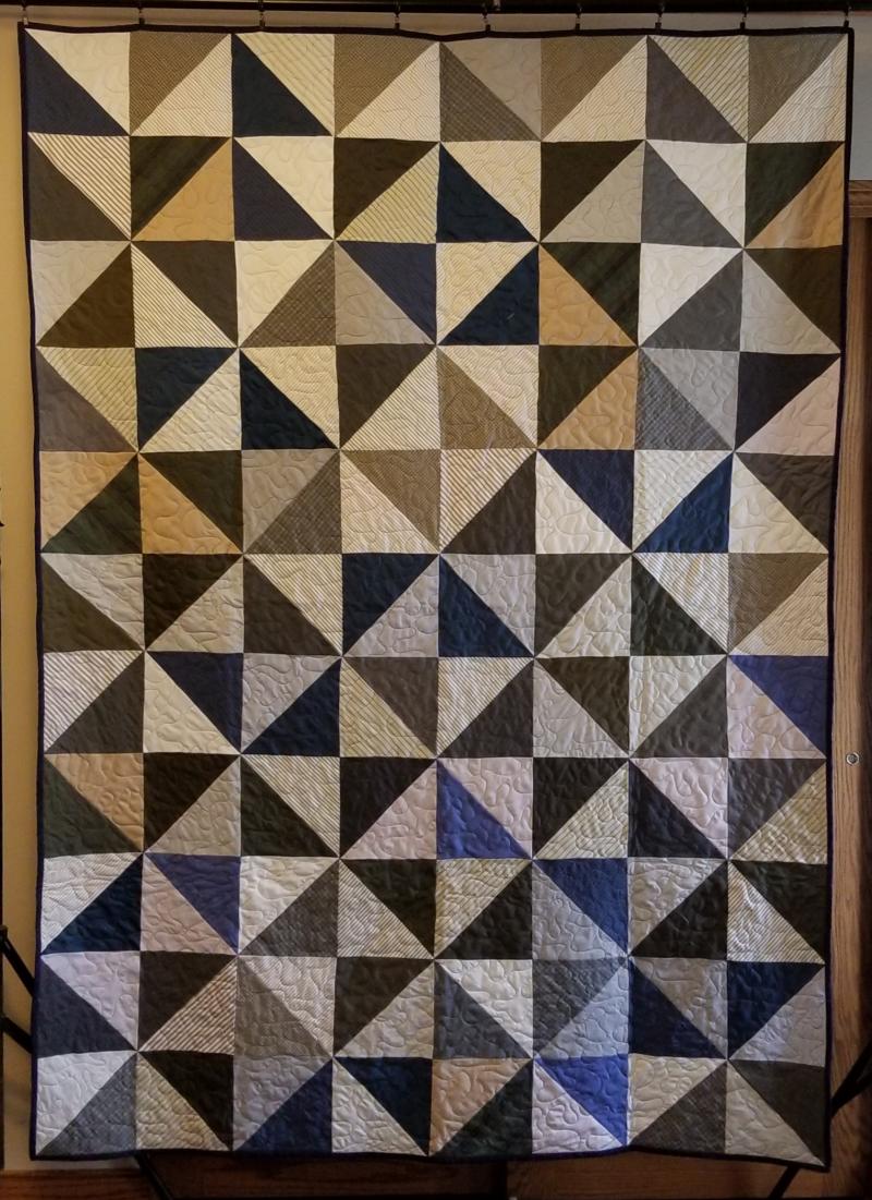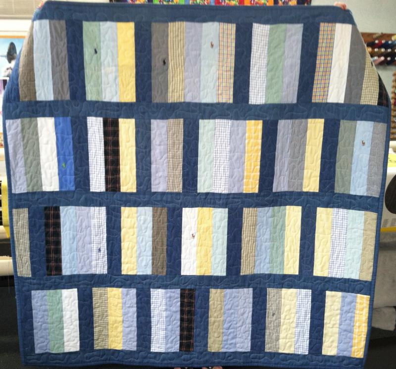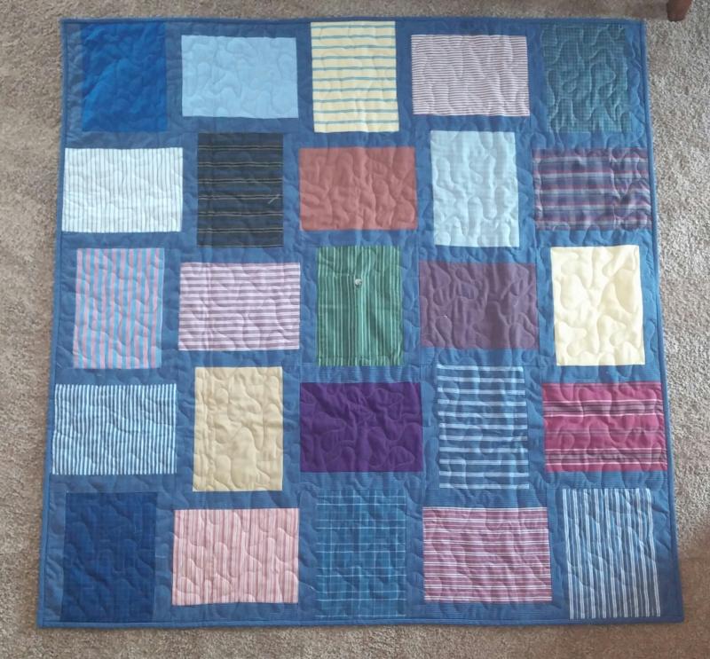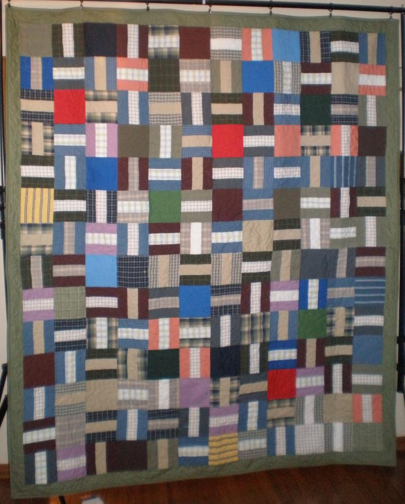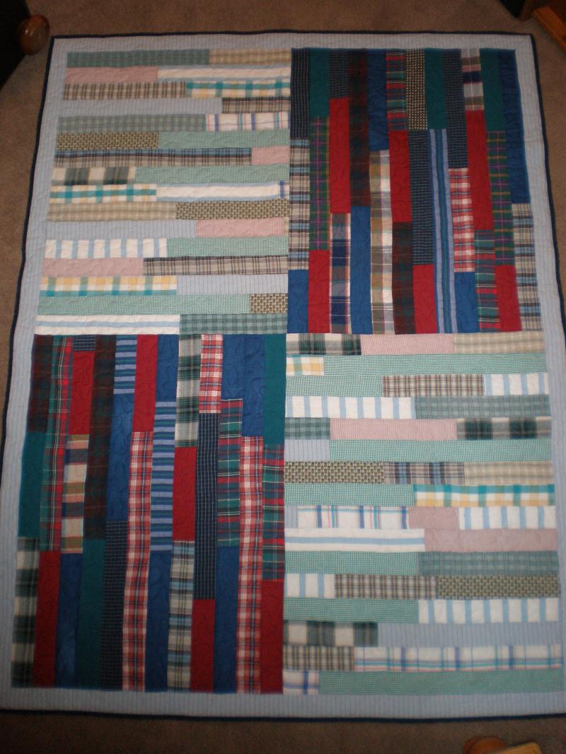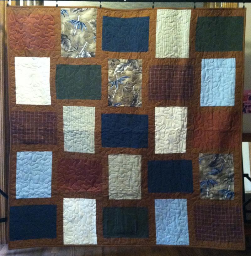 These 3 quilts were made for a mother and two daughters from their beloved husband/father's favorite shirts: