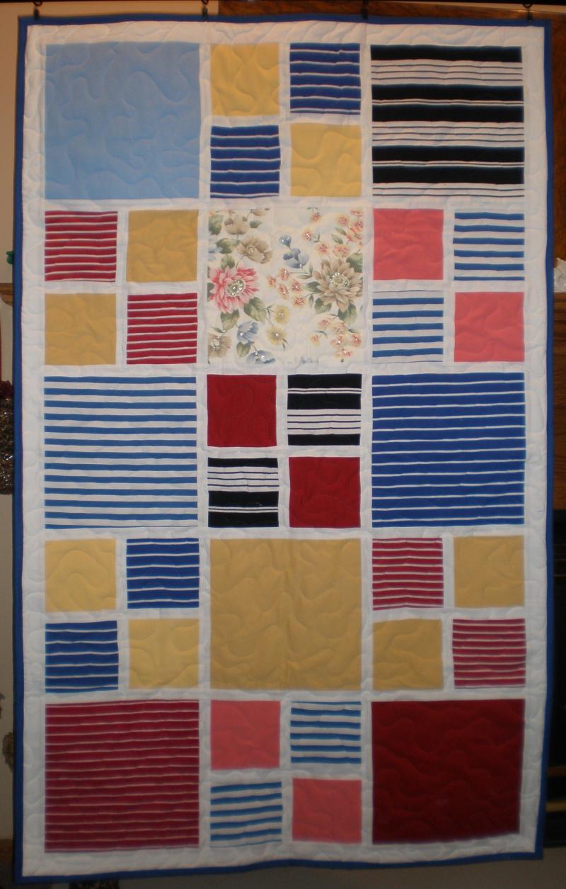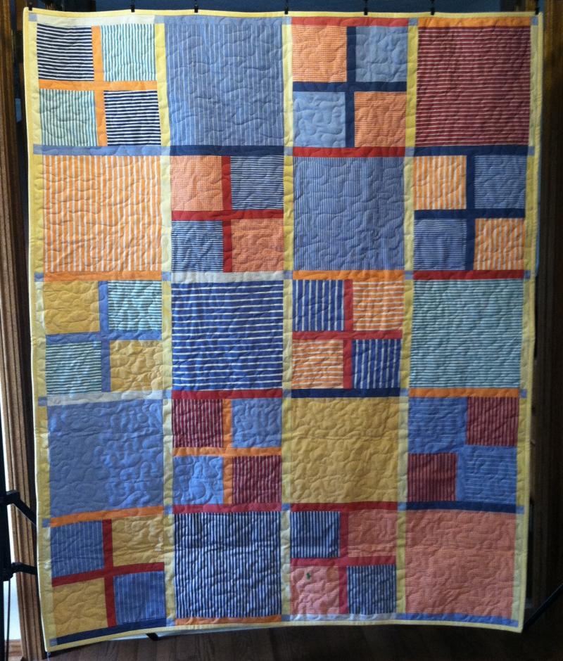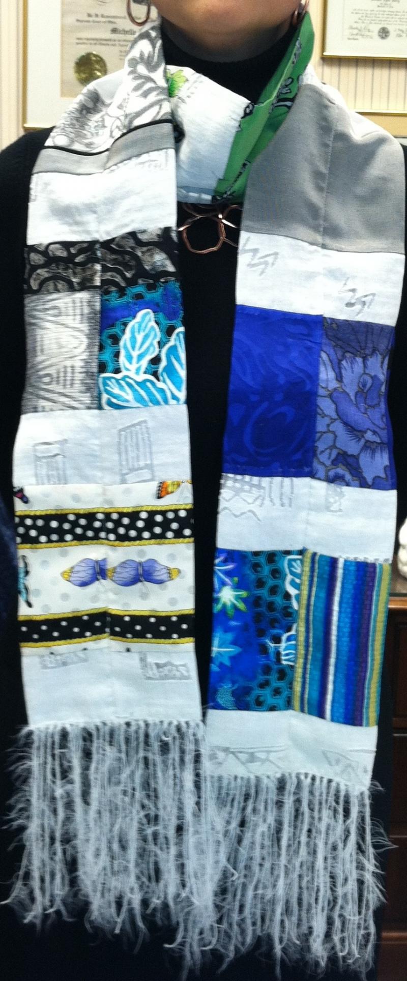 This scarf was made from the remnants of several shirts in the quilt pictured above: