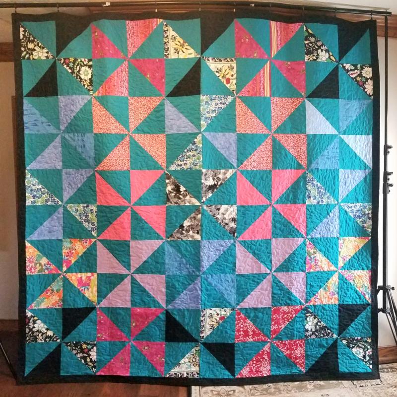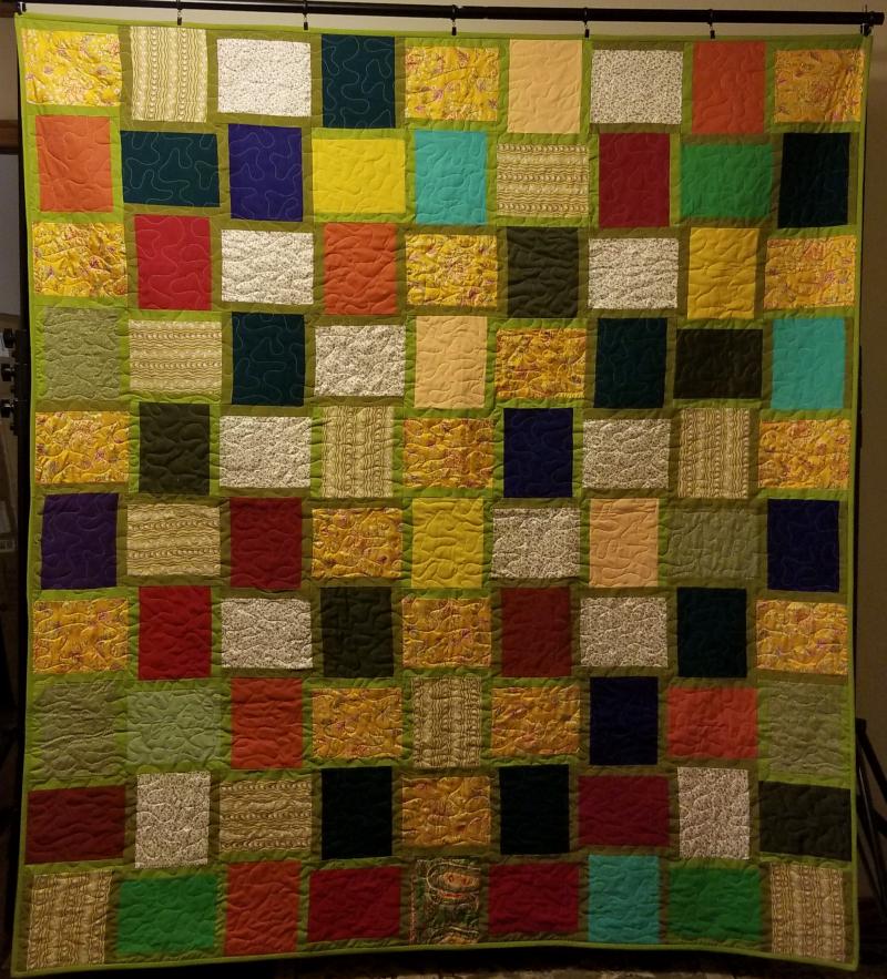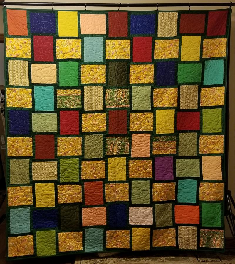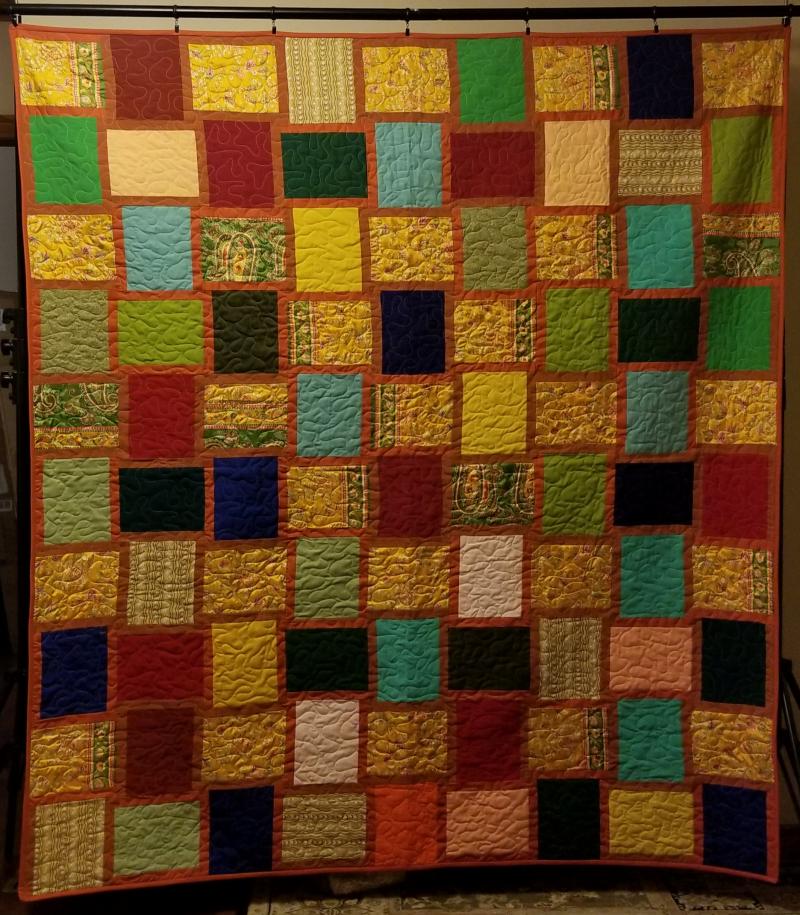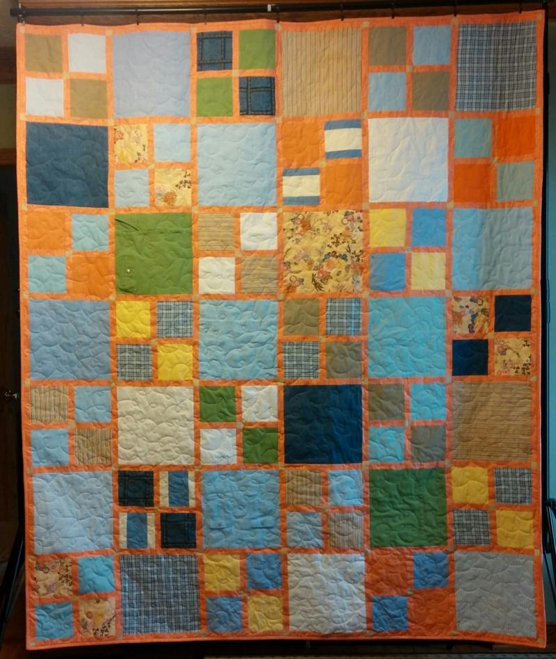 This scarf was made from the remnants of several shirts in the quilt pictured above: