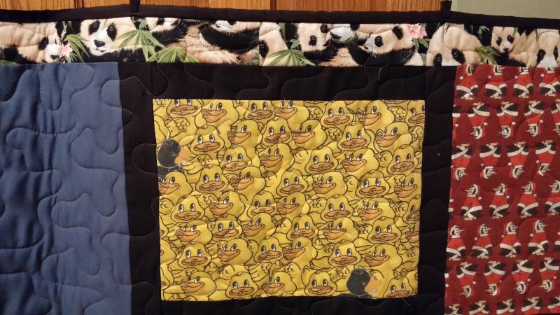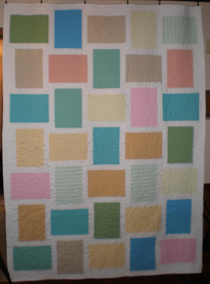 Baby quilt from Great Grandma's clothing, with embroidery.